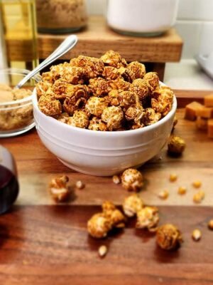 INGREDIENTS: POPCORN, CORN OIL, SUGAR, BROWN SUGAR, MOLASSES, ARTIFICIAL FLAVOURS, SOY LECITHIN, SALT, FD&C YELLOW #5, FD&C RED #40, FD&C BLUE #1. CONTAINS: SOY